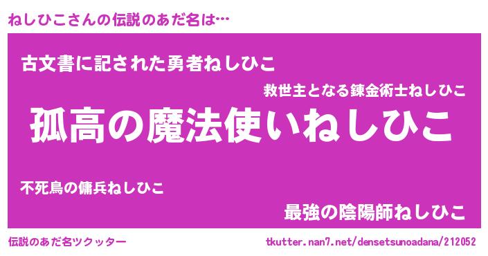 | 胡散臭い通販商品みたいなあだ名 | 『ガンによく効く高麗人参…その名も「ねしひこ」』 |