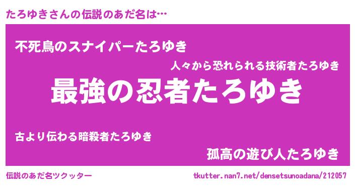 | ヒーロー風カッコイイあだ名 | 『ウルトラたろゆきマン』『銀牙騎士タロ』 |