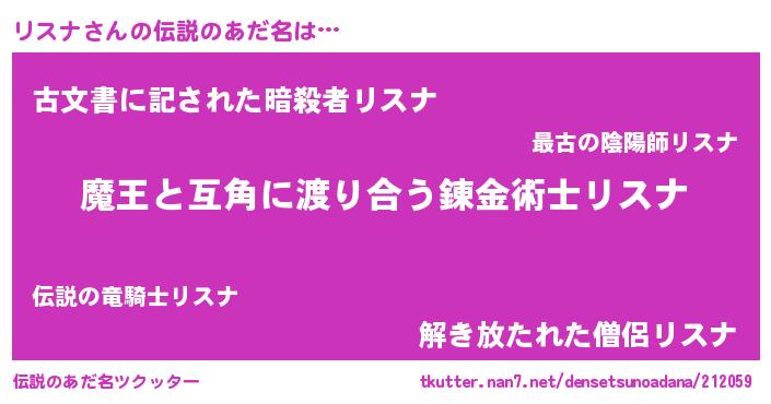 | ヒーロー風カッコイイあだ名 | 『最強戦士リスナ』『慈愛の使者リスナ』 |