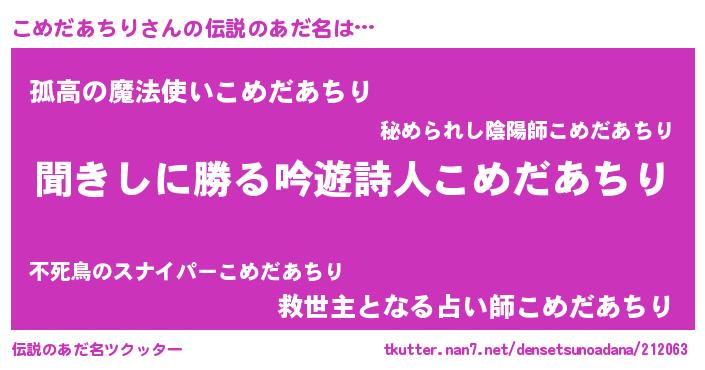 | 女子向けラノベタイトル風あだ名 | 『こめだあちりなんてお断りですっ。』 |