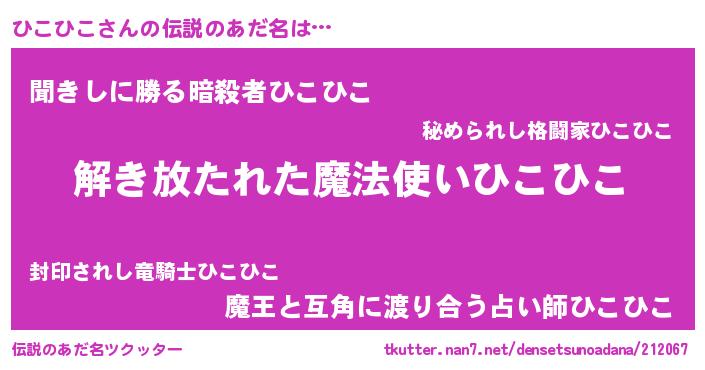 | 胡散臭い通販商品みたいなあだ名 | 『テレビで話題の高麗人参…その名も「ひこひこ」』 |