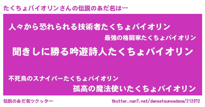 | ヒーロー風カッコイイあだ名 | 『ネオタクチョバイオリン』 |