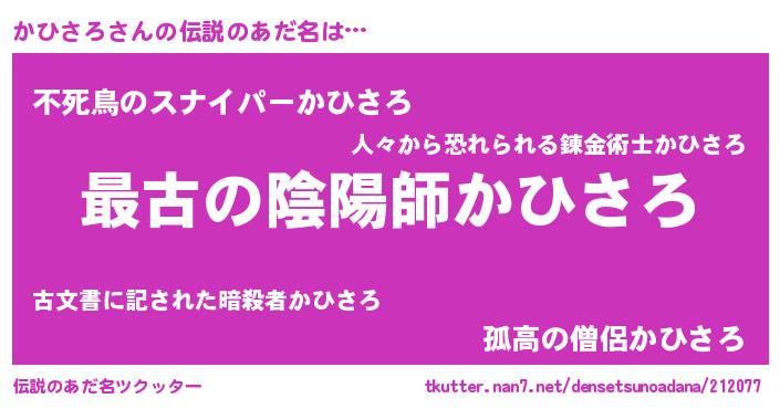 | 意味不明あだ名 | 『かひさろフォーエバー』『自称かひさろ』 |