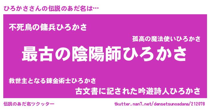 | 男性向けラノベタイトル風あだ名 | 『転生したらひろかさだった件』 |