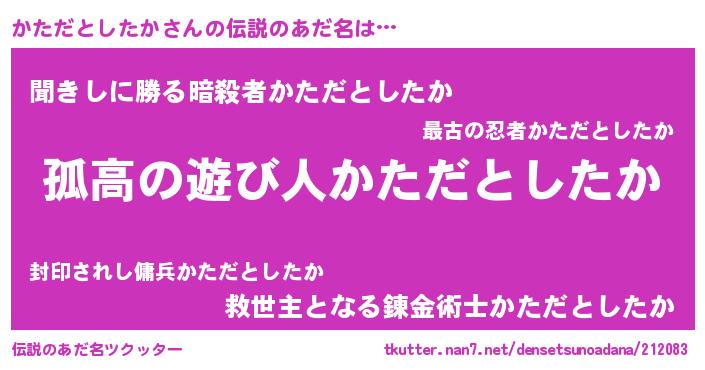 | 胡散臭い通販商品みたいなあだ名 | 『信頼と実績のペンダント…その名も「かただとしたか」』 |