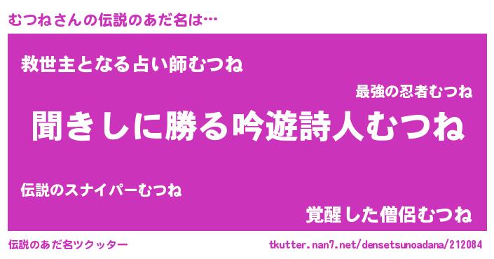 | 意味不明あだ名 | 『しいたけ科むつね属』『自称むつね』 |