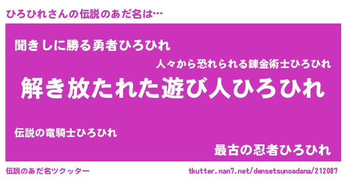 | ヒーロー風カッコイイあだ名 | 『幻影騎士ヒロ』『ネオヒロヒレ』 |