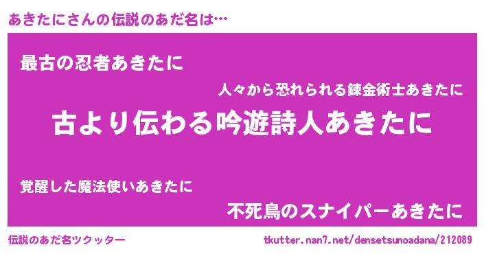 | 男性向けラノベタイトル風あだ名 | 『あきたにという概念が存在しない退屈な世界 』 |