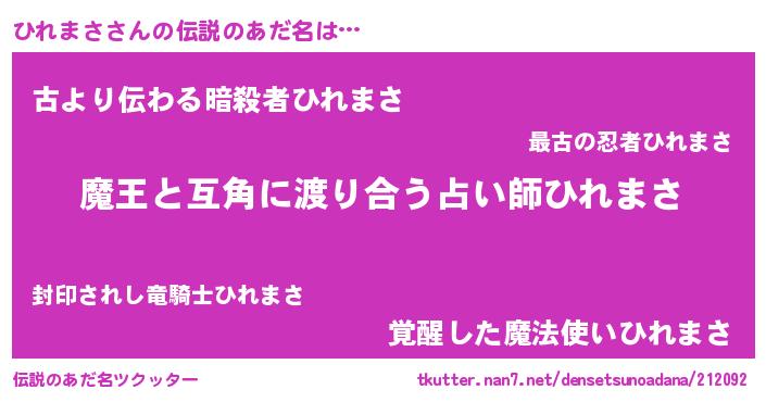 | 意味不明あだ名 | 『自称ひれまさ』『永久保存ひれまさ』 |