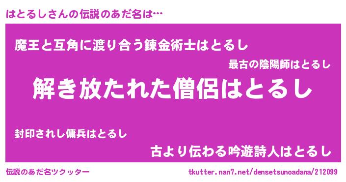 | 意味不明あだ名 | 『とにかく怪しいはとるし』 |