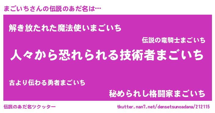 | ヒーロー風カッコイイあだ名 | 『正義の使者まごいち』『魔戒騎士マゴ』 |