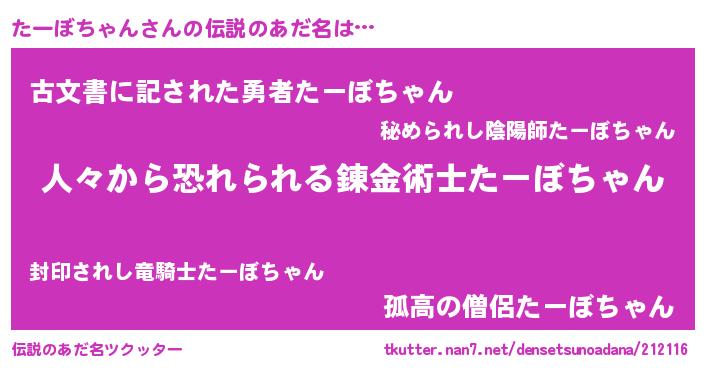 | 意味不明あだ名 | 『自称たーぼちゃん』 |