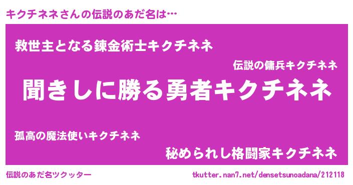 | ヒーロー風カッコイイあだ名 | 『ネオキクチネネ』『仮面キクダー』 |