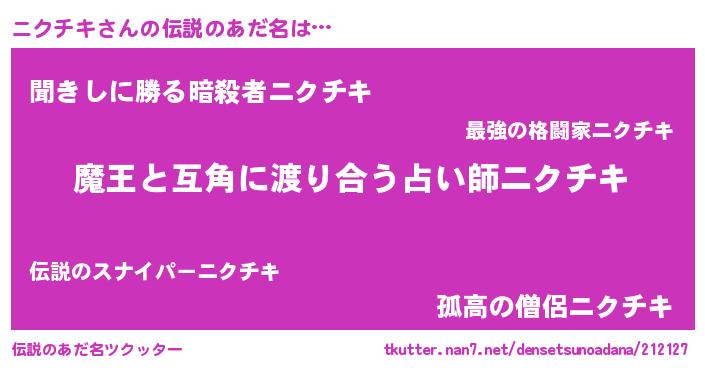 | ヒーロー風カッコイイあだ名 | 『愛の使者ニクチキ』『ネオニクチキ』 |