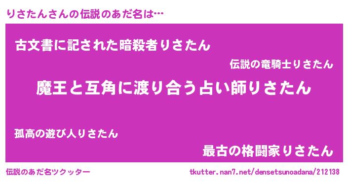 | 女子向けラノベタイトル風あだ名 | 『りさたん恋絵巻』『りさたんの契約王妃』 |