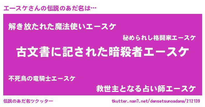 | ヒーロー風カッコイイあだ名 | 『仮面エーダー』『ネオエースケ』 |