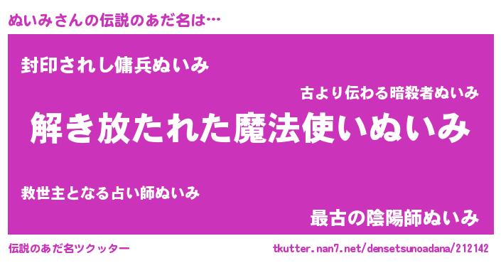 | 意味不明あだ名 | 『住所不定無職ぬいみ(8歳)』 |