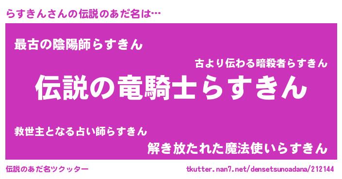 | ファンタジー風あだ名 | 『ラスフェル』『エターナルラスキンー』 |