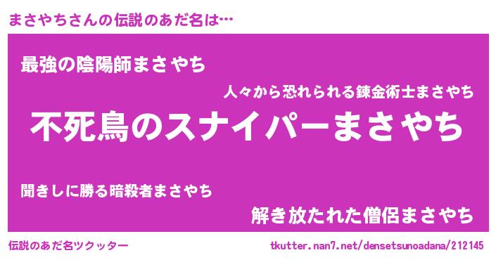 | ヒーロー風カッコイイあだ名 | 『スーパーマサヤチ』『最強戦士マサヤチ』 |