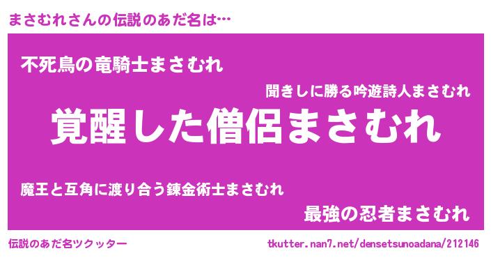 | 意味不明あだ名 | 『とにかく怪しいまさむれ』 |