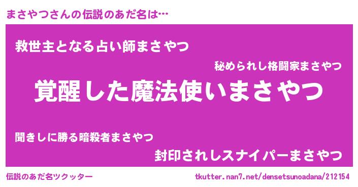 | ヒーロー風カッコイイあだ名 | 『幻影騎士マサ』『天空の使者まさやつ』 |