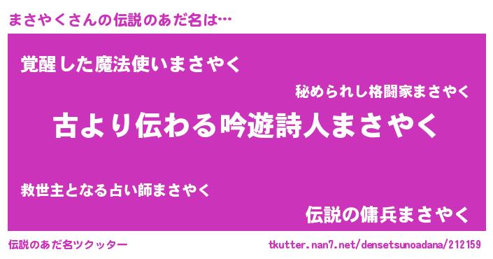 | 意味不明あだ名 | 『住所不定無職まさやく(9歳)』 |