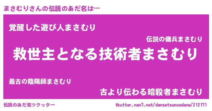 | ヘコむあだ名 | 『まさを』『まさむり(遠い目)』 |