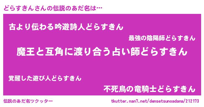 | ヘコむあだ名 | 『どらすきん(笑)』『どらにー』 |
