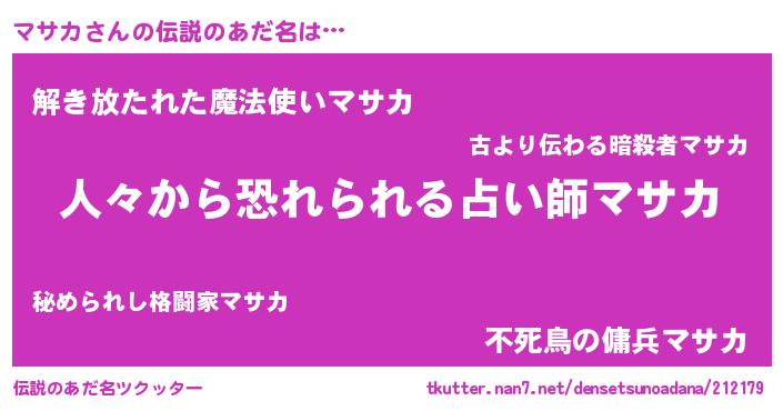 | ヒーロー風カッコイイあだ名 | 『正義の使者マサカ』『幻影騎士マサ』 |