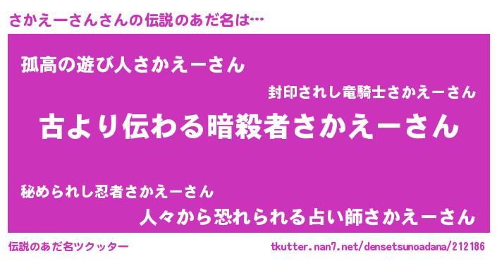 | 意味不明あだ名 | 『永久保存さかえーさん』 |
