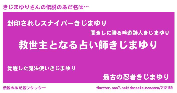 | ヒーロー風カッコイイあだ名 | 『慈愛の使者きじまゆり』 |
