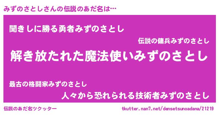 | 胡散臭い通販商品みたいなあだ名 | 『伝統あるサプリメント…その名も「みずのさとし」』 |