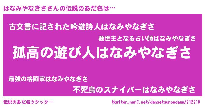 | 意味不明あだ名 | 『とにかく怪しいはなみやなぎさ』 |