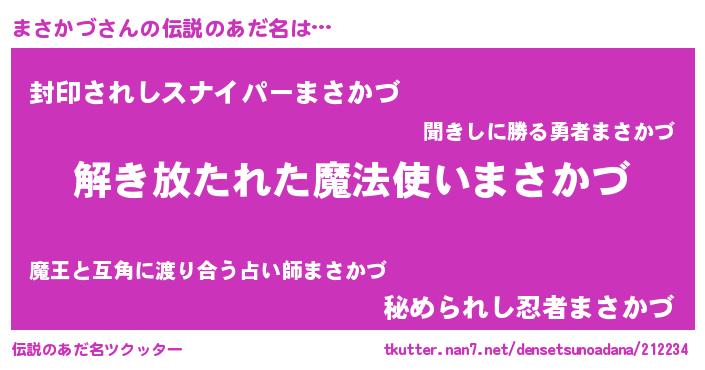 | 胡散臭い通販商品みたいなあだ名 | 『伝統あるサプリメント…その名も「まさかづ」』 |