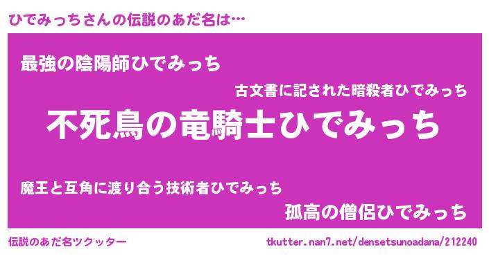 | 女子向けラノベタイトル風あだ名 | 『ひでみっち姫と円卓の騎士』 |