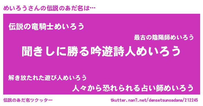 | ヘコむあだ名 | 『めいろう(笑)』『めいもー』 |