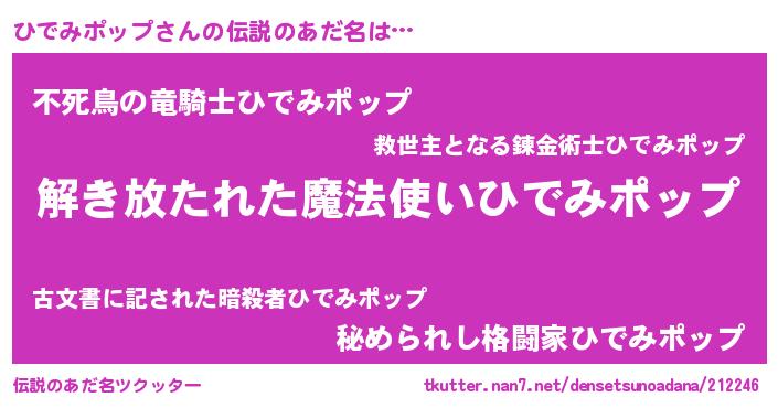 | 女子向けラノベタイトル風あだ名 | 『闇のひでみポップ』 |