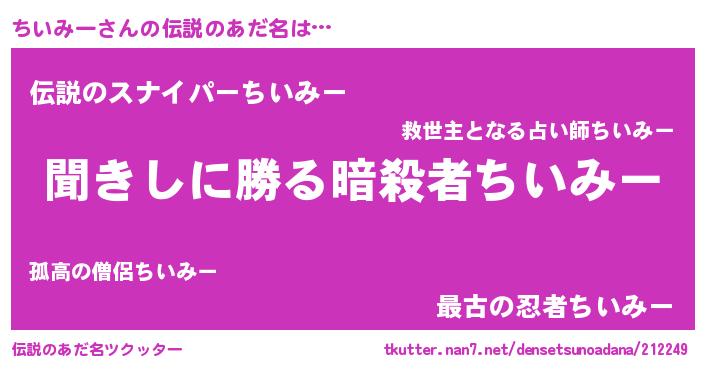 | 意味不明あだ名 | 『自称ちいみー』『エリンギ科ちいみー属』 |