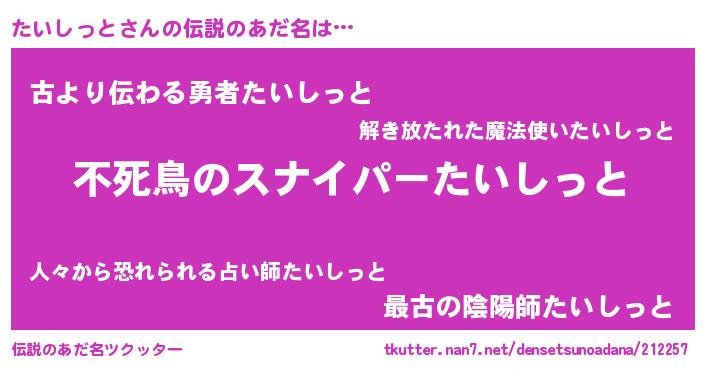 | 意味不明あだ名 | 『自称たいしっと』『ペロリンたいしっと』 |