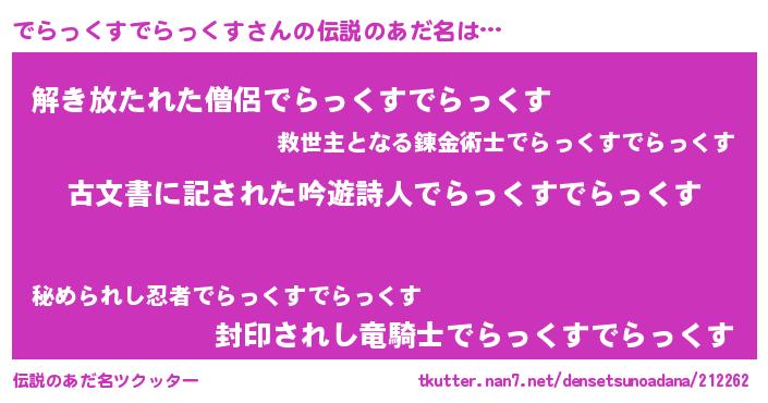 | 意味不明あだ名 | 『永久保存でらっくすでらっくす』 |