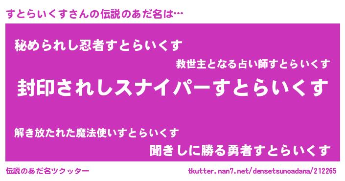| 男性向けラノベタイトル風あだ名 | 『Re:すとらいくすから始める異世界生活』 |