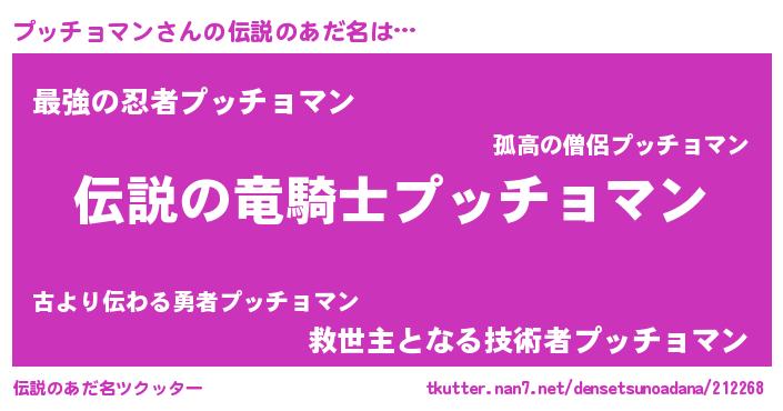 | ヒーロー風カッコイイあだ名 | 『スーパープッチョマン』『天弓騎士プッ』 |