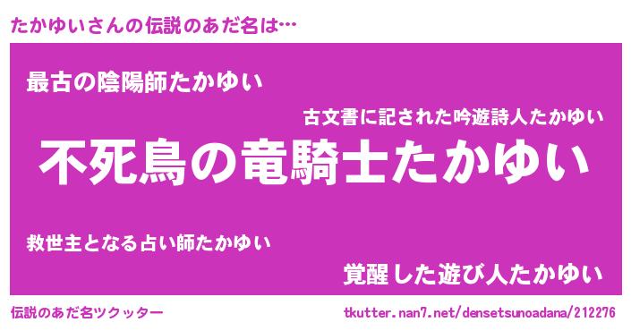 | 男性向けラノベタイトル風あだ名 | 『たかゆいの憂鬱』 |