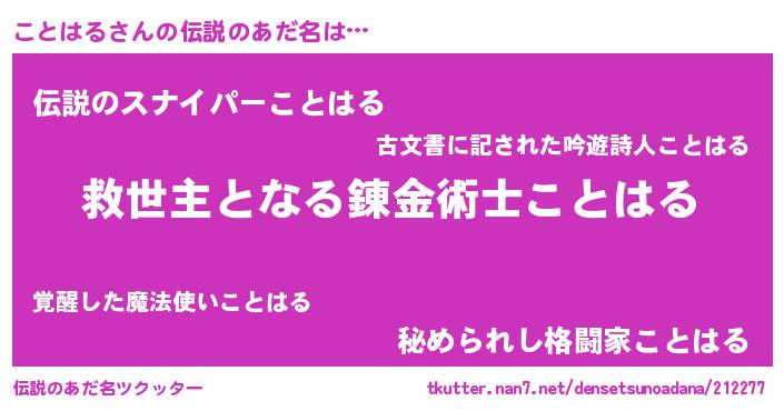 | ヒーロー風カッコイイあだ名 | 『慈愛の使者ことはる』『仮面コトダー』 |