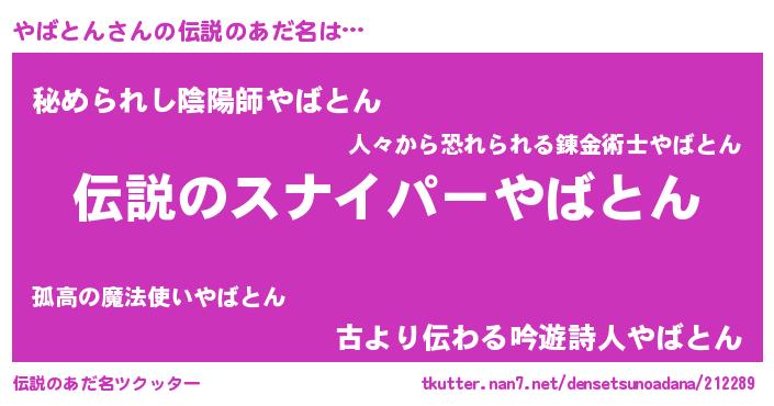 | 意味不明あだ名 | 『住所不定無職やばとん(91歳)』 |