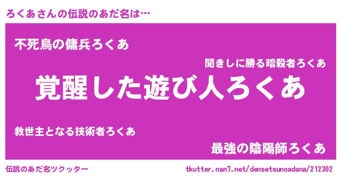 | 意味不明あだ名 | 『つくし科ろくあ属』『自称ろくあ』 |