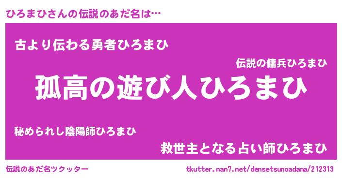 | ヒーロー風カッコイイあだ名 | 『暗黒騎士ヒロ』『ネオヒロマヒ』 |