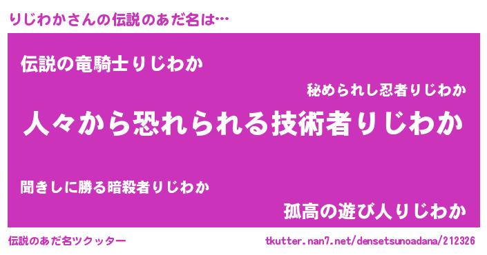 | 意味不明あだ名 | 『自称りじわか』『ペロリンりじわか』 |