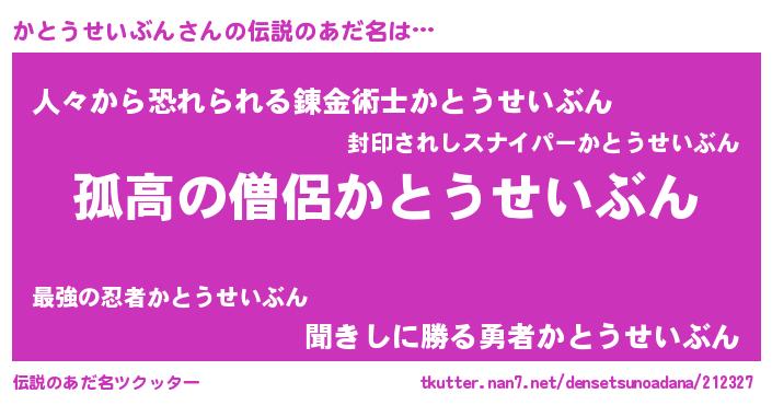| 意味不明あだ名 | 『とにかく怪しいかとうせいぶん』 |