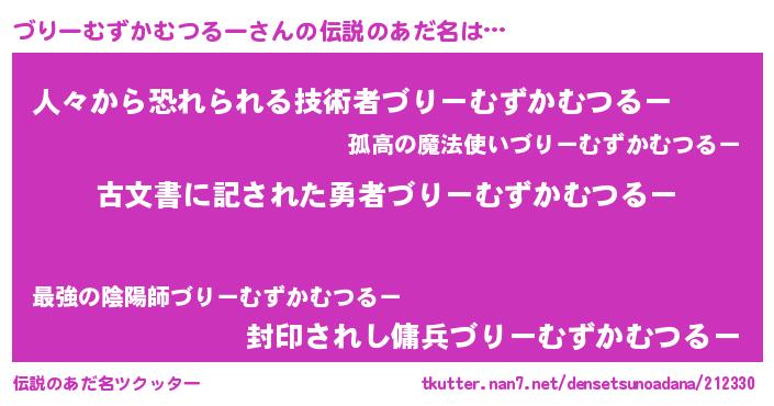 | 意味不明あだ名 | 『永久保存づりーむずかむつるー』 |